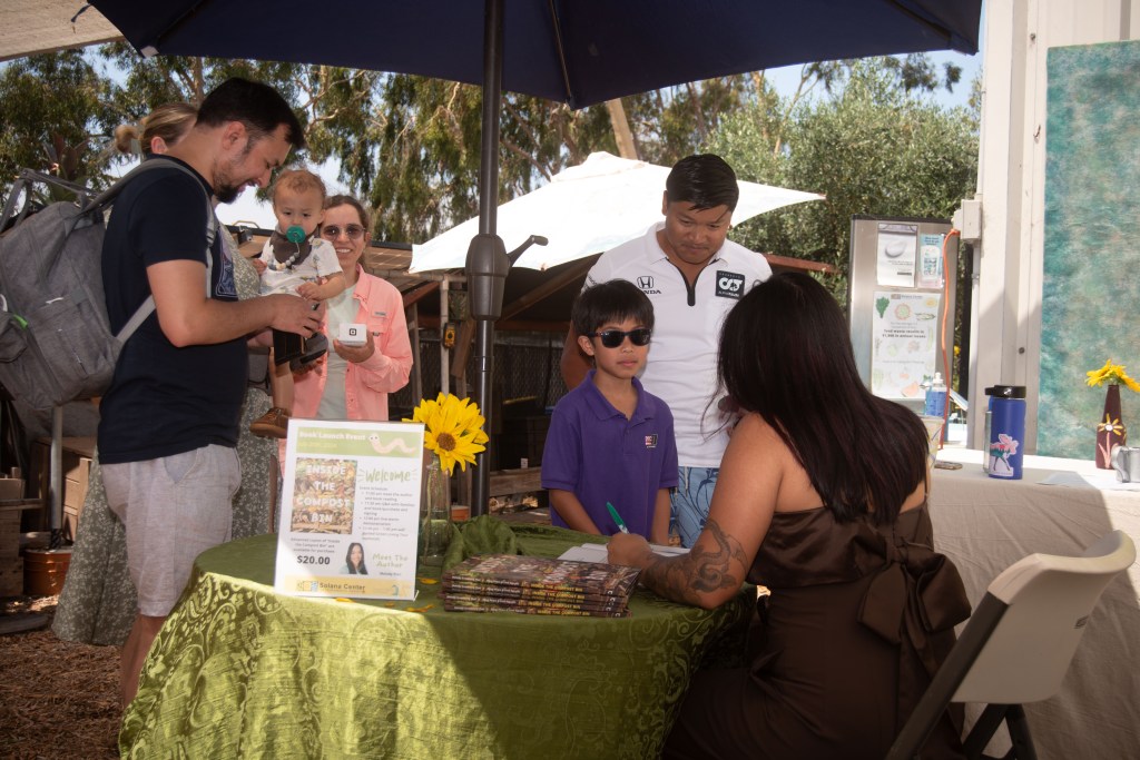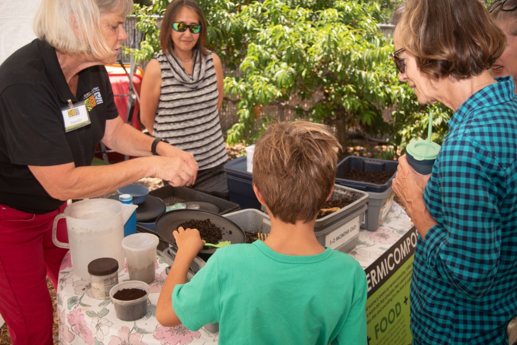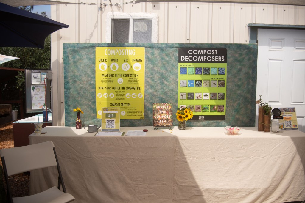 There were educational posters that served as a backdrop to my book reading and Q&A on compost critters and the compost process. There was a vermicomposting station, a caterpillar picture booth, and a bunch of cool compost-related stuff that people can look at and tour! Here’s some photos from the event. All images unless otherwise noted are courtesy of Solana Center for Environmental Innovation: