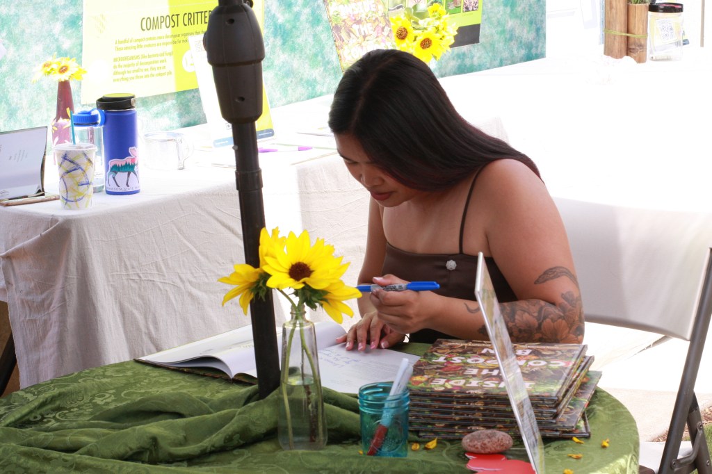It was so great to talk to everyone during the Q&A and also during the book signing. While I signed books, it was fun to find out where they were going to. Some books were going to nieces and nephews, one was going to a cousin who loved composting, one was going to a daughter who couldn’t attend, another was going to a library, a few were going to classrooms, and a bunch were staying right with the person who was purchasing the book. I was excited for all the journeys these books would make, and hope they make their readers happy.